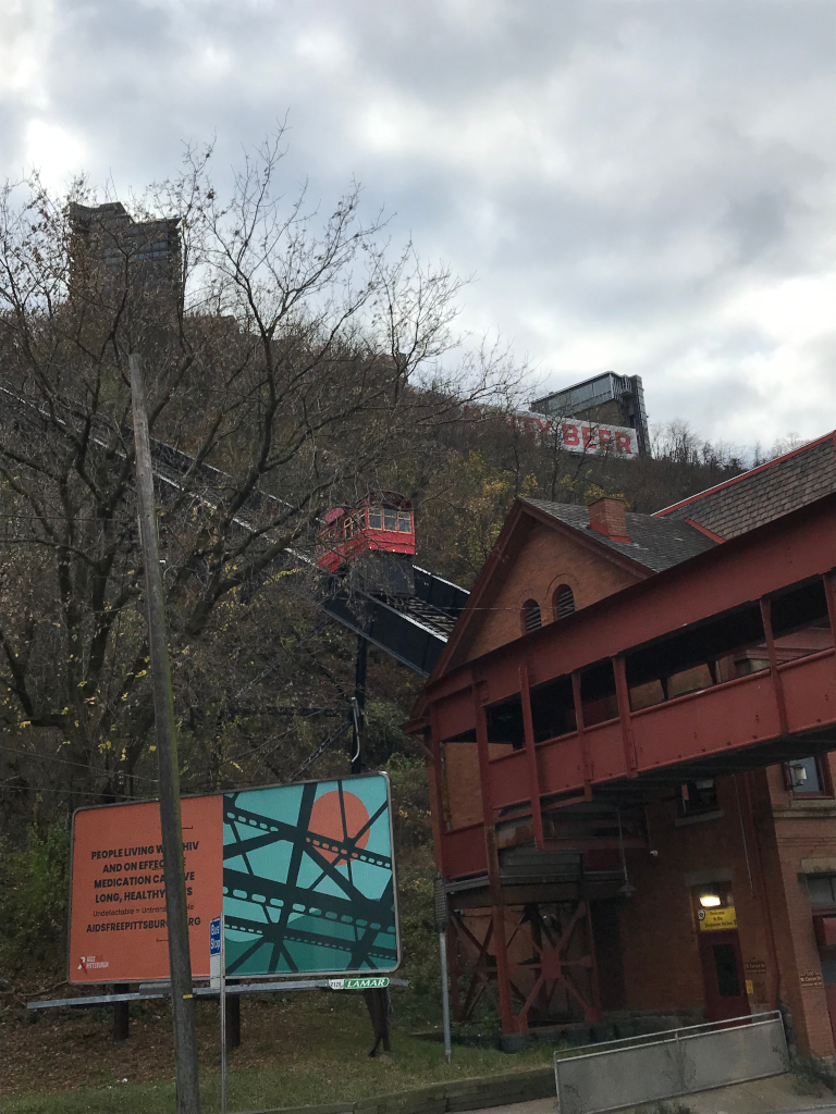 I took a week’s vacation after my week’s work was completed, and spent four days in Pittsburgh before travelling to Lake Erie, to spend a further four days at the Lake Erie Gala, an annual event for transwomen. For the week that I was working, the weather was unseasonably warm – the sweaters that I had packed were not needed. But for the week that I spent on vacation, the weather was unseasonably cold. Fortunately I had brought some warm sweaters and I was able to layer up and stay warm. Outside it was very cold indeed! On the first day of my vacation, I took the bus over to the base of the Duquesne Incline, a famous funicular on the south side of Pittsburgh that rises 122 m to afford views of the city. I battled through icy winds, but on arrival I discovered that it was cash only if you wanted to buy a ticket. In the UK, cash has virtually disappeared from our lives; I use contactless payments everywhere. So this was a bit of a surprise in the land that pioneered plastic! I never made it back because the weather remained bitter and it was a little bit of a trek by public transport. But if I ever make it back, its something I must do! At the top is a large sign advertising “Iron City Beer” so I guess that’s an encouragement…